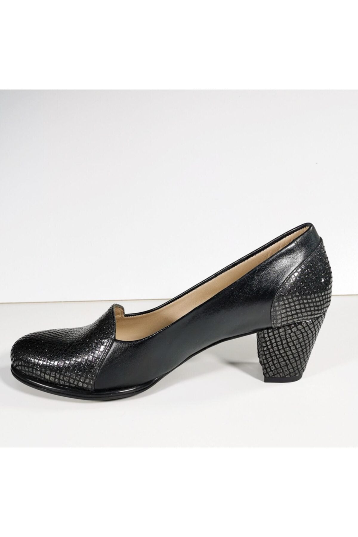 Zarif ve modern çizgileriyle öne çıkan bu %100 hakiki deri siyah kadın ayakkabı, konfor ve şıklığı bir araya getirir.