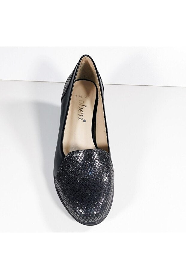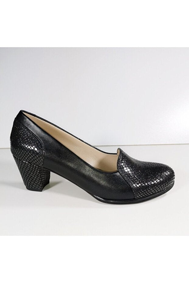 %100 Hakiki Deri Siyah Kalın Topuklu Kadın Ayakkabı | OBEN AYAKKABI
