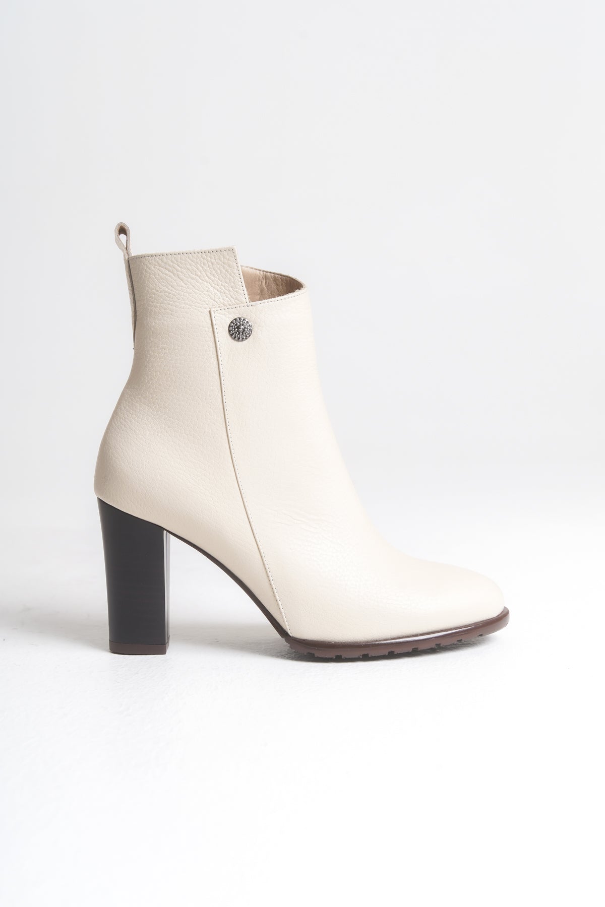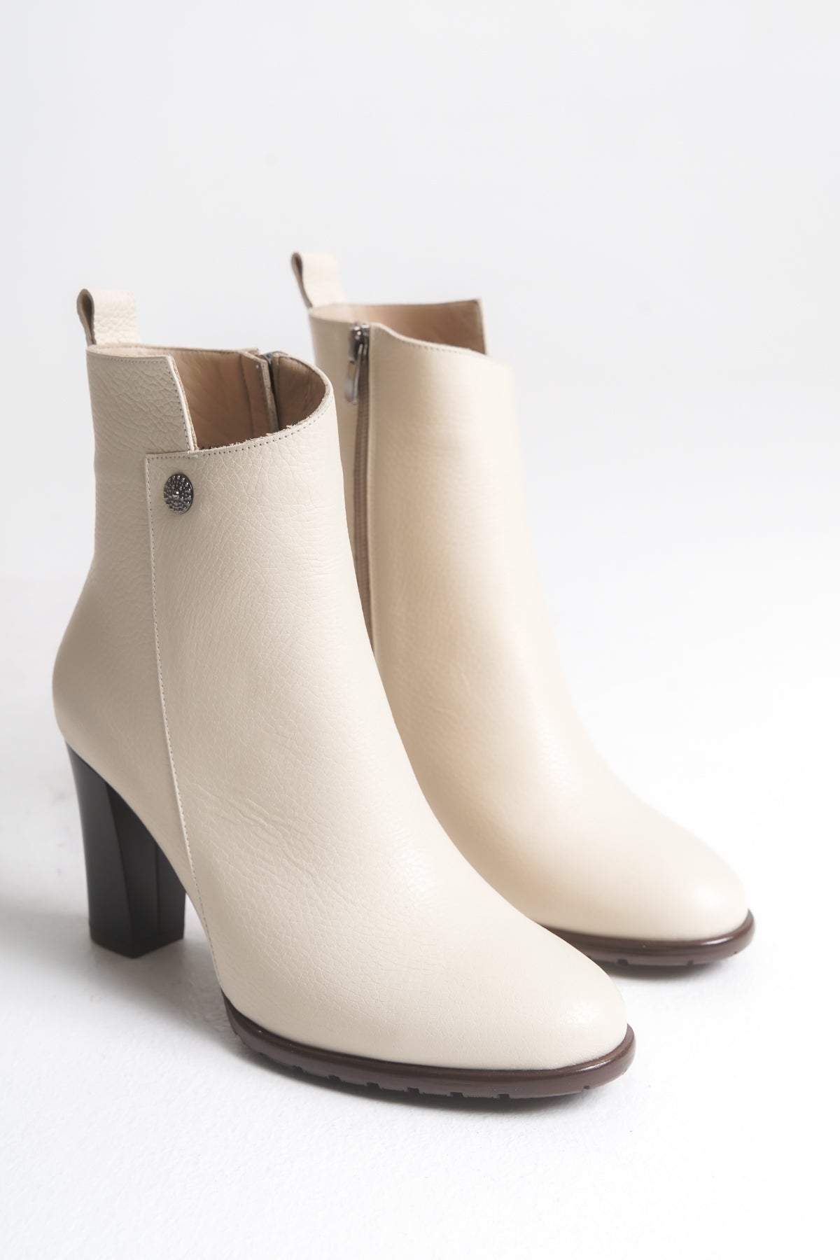 Kadın Hakiki Deri Topuklu Bot – El Yapımı, Fermuarlı, Şık Tasarım Bej | OBEN AYAKKABI