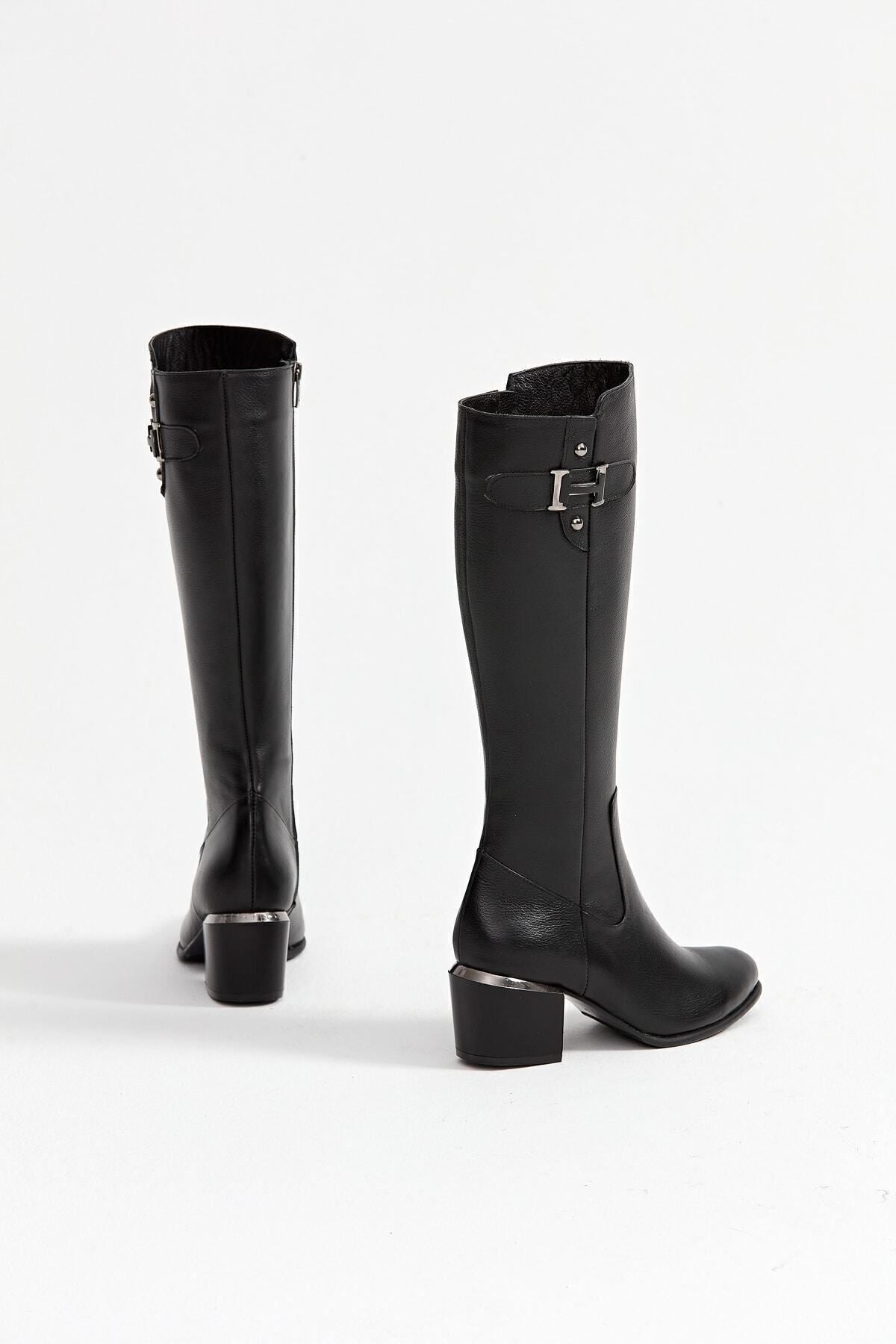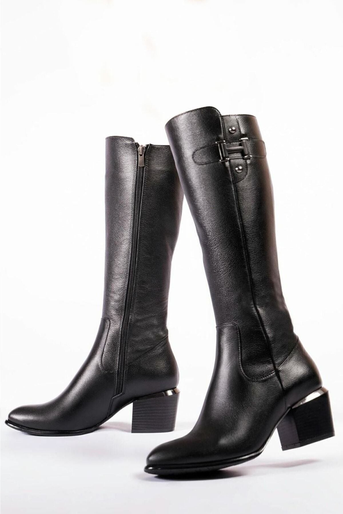 Kadın Hakiki Deri Topuklu, El Yapımı, Fermuarlı, Şık Tasarım Siyah Çizme | OBEN AYAKKABI
