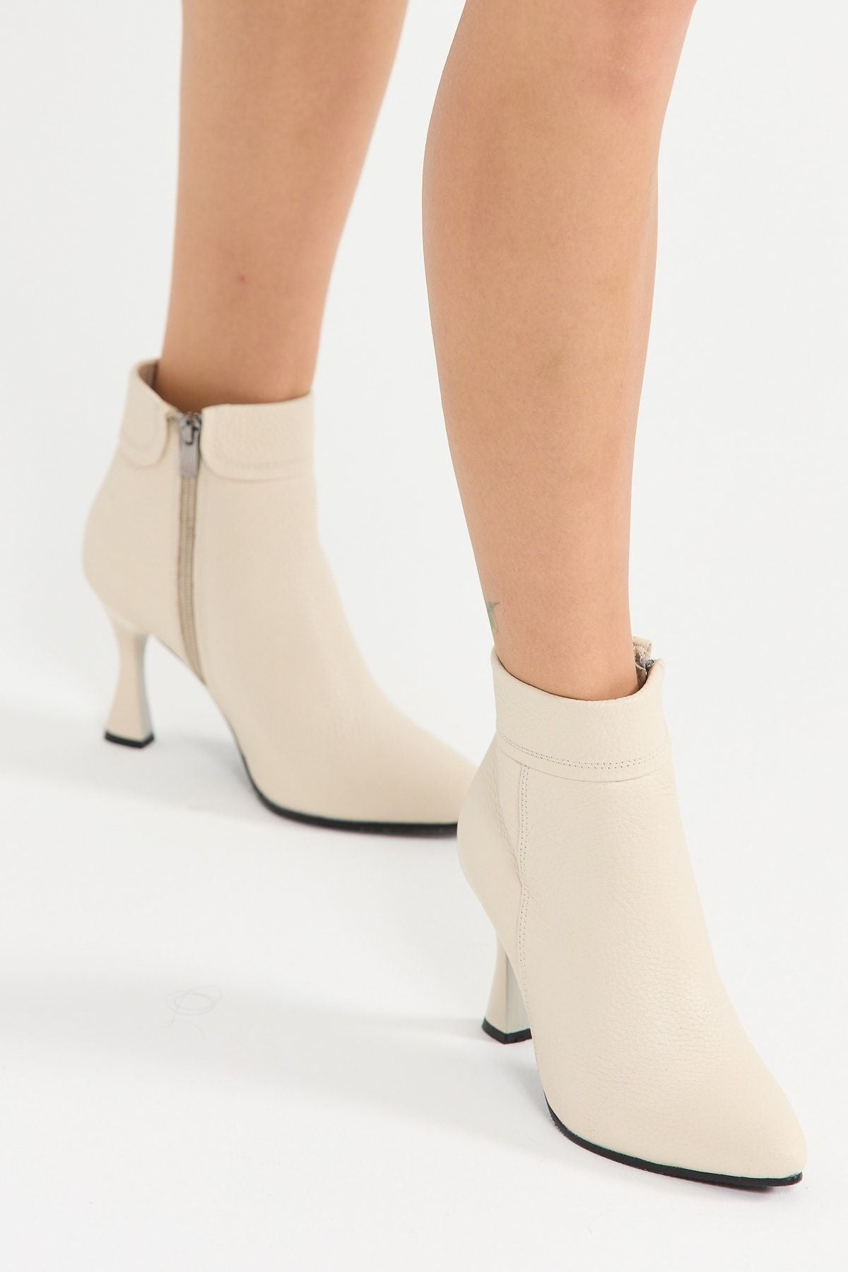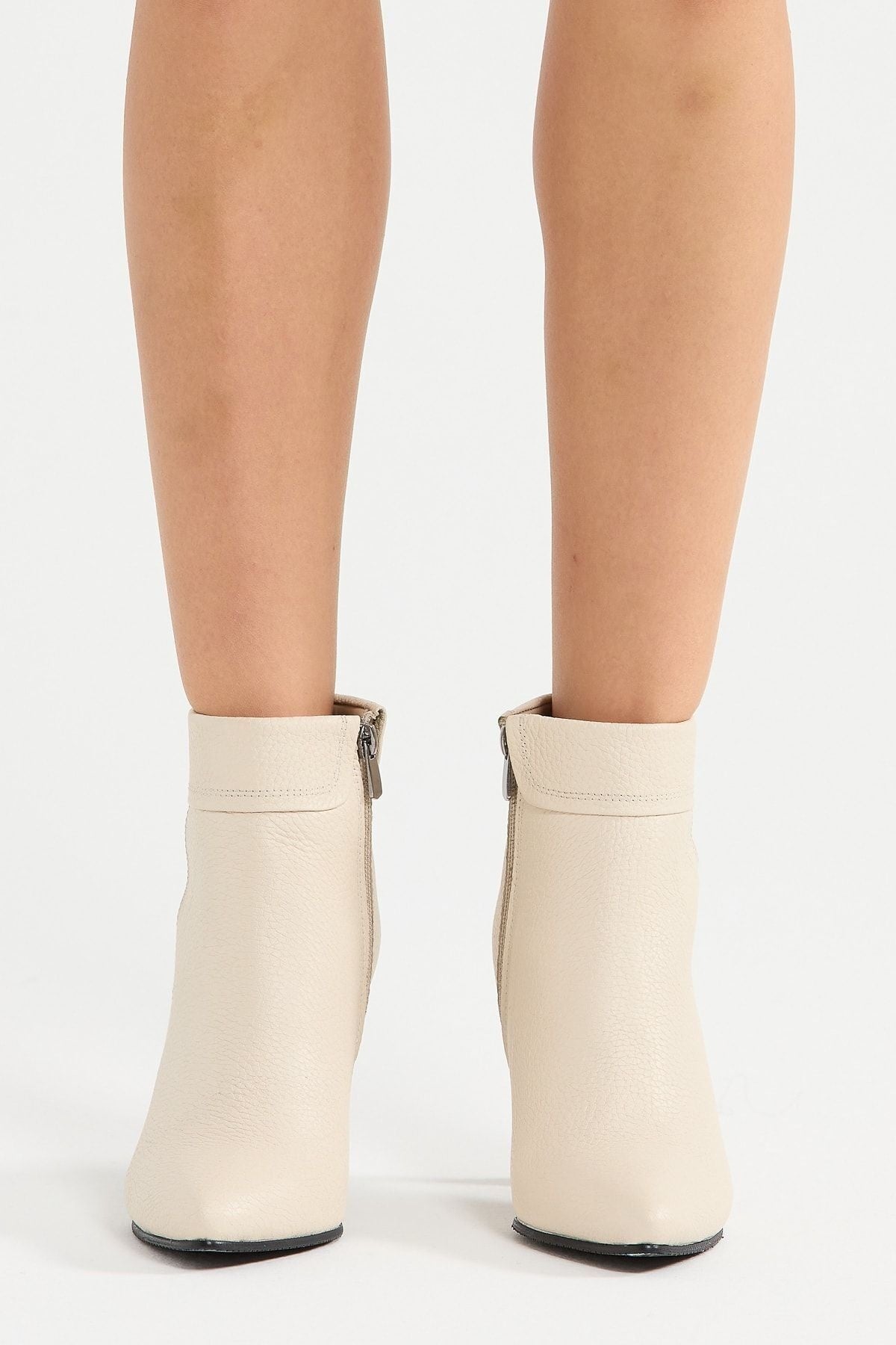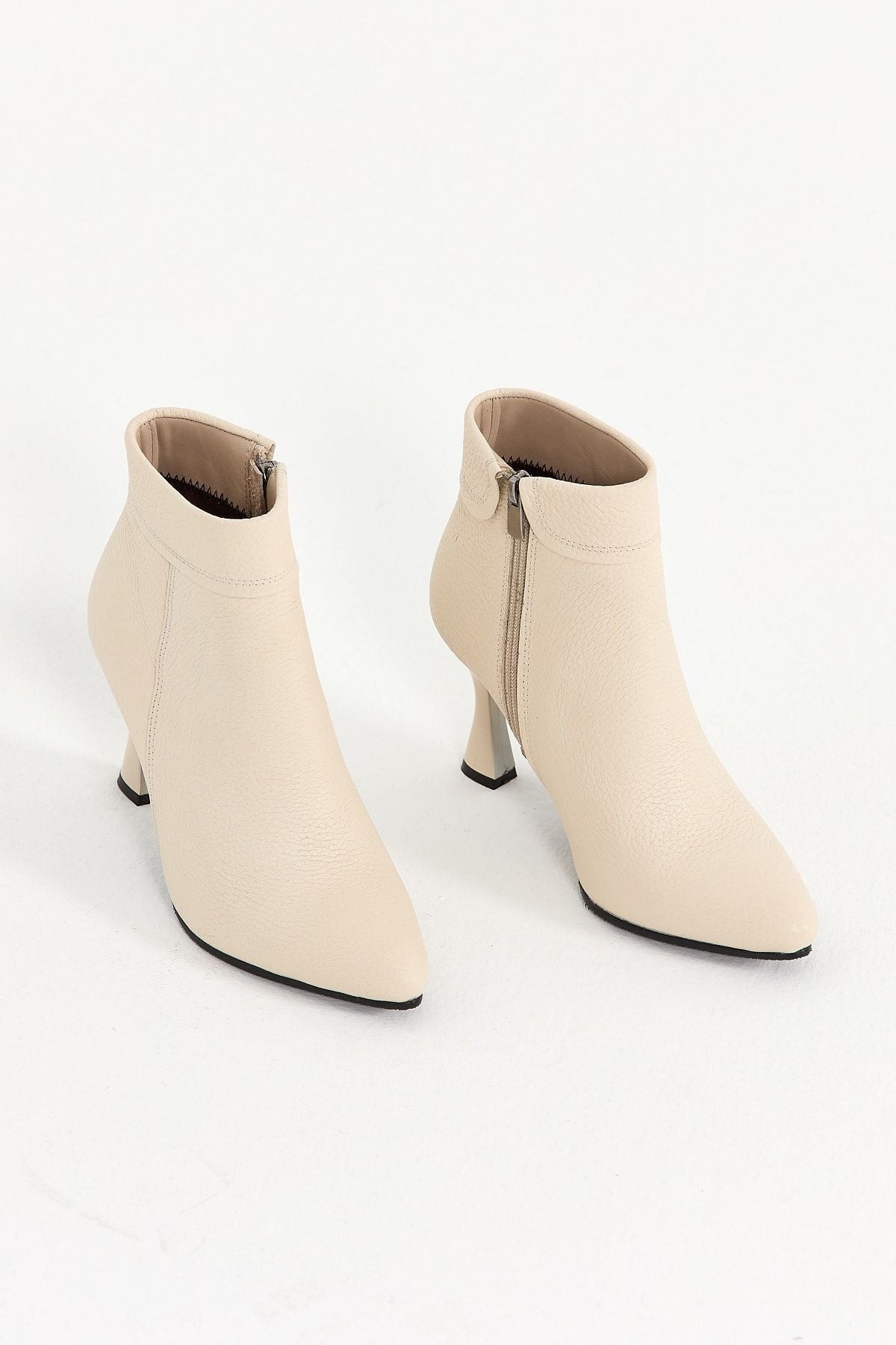 Kadın Hakiki Deri Topuklu Bot – El Yapımı, Şık Tasarım Bej Bot | OBEN AYAKKABI