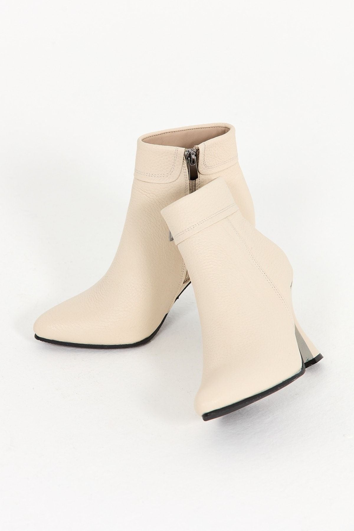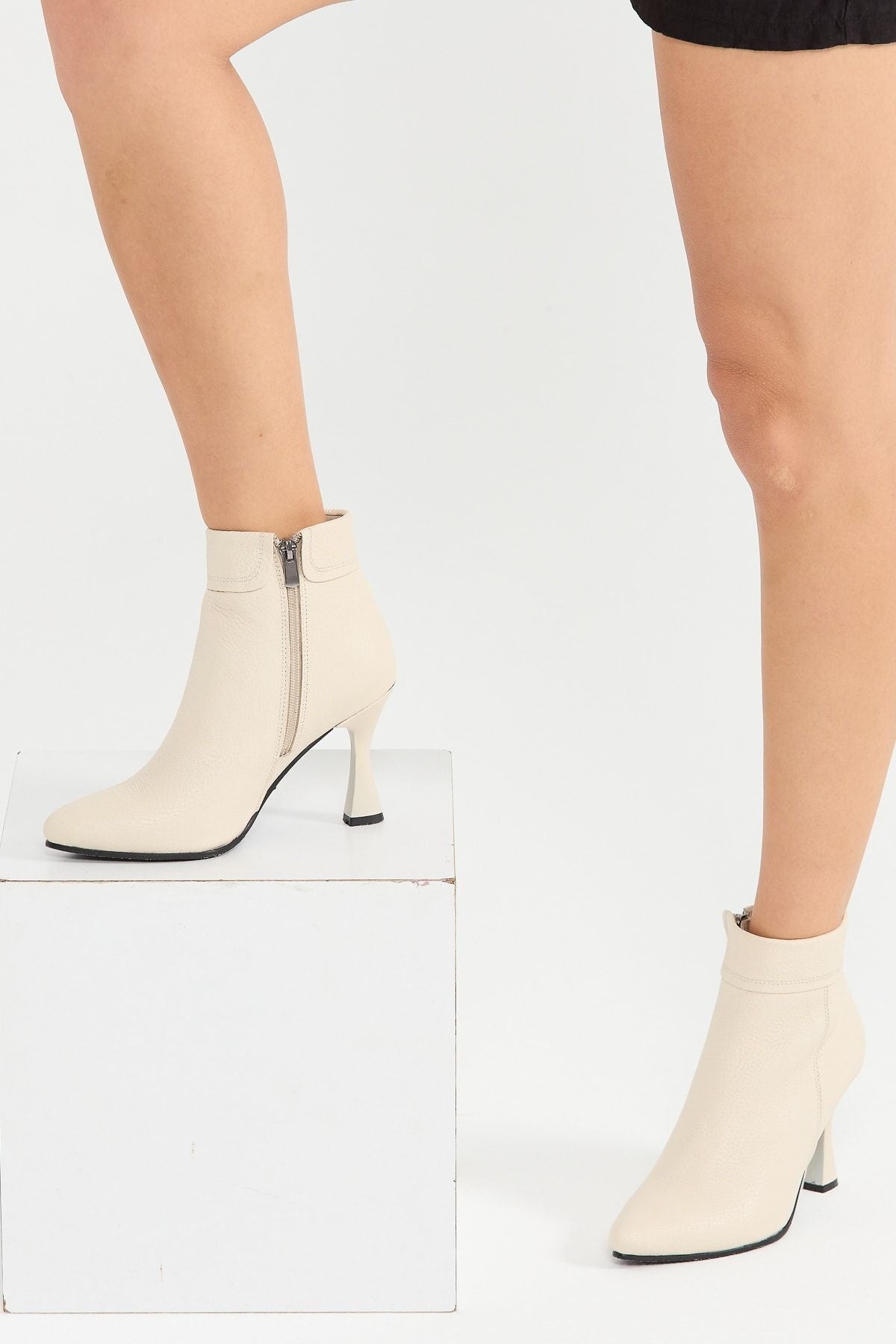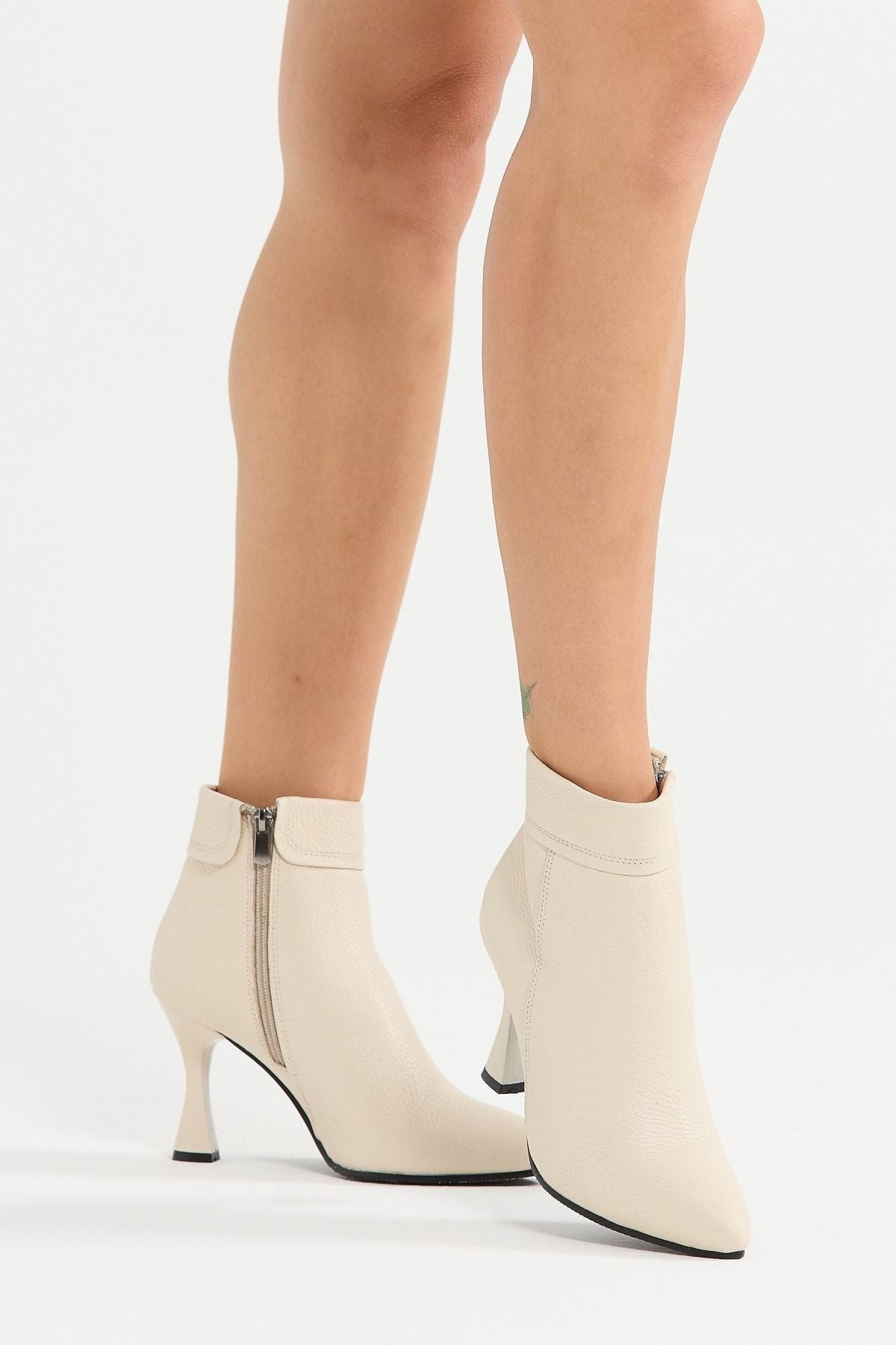 Kadın Hakiki Deri Topuklu Bot – El Yapımı, Şık Tasarım Bej Bot | OBEN AYAKKABI