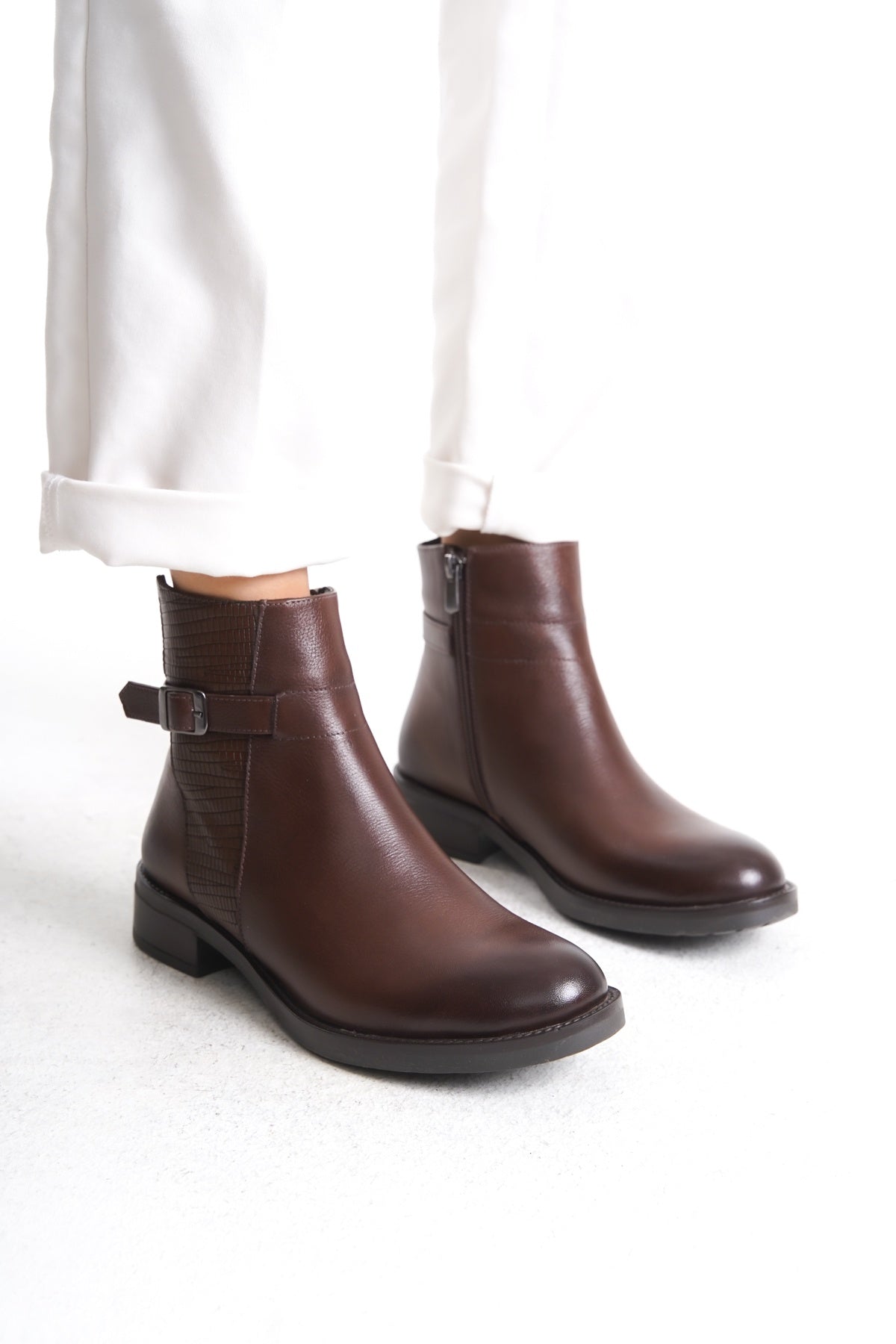 El yapımı %100 hakiki deri kadın bot, üstün kalite ve konforu bir araya getiriyor. Dışı ve iç astarı tamamen birinci sınıf yumuşak deriden üretilmiştir. Nefes alan yapısı sayesinde ayağınızı gün boyu kuru ve rahat tutar.